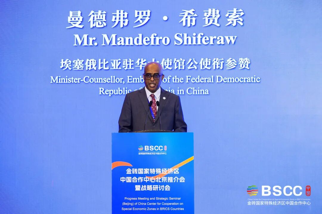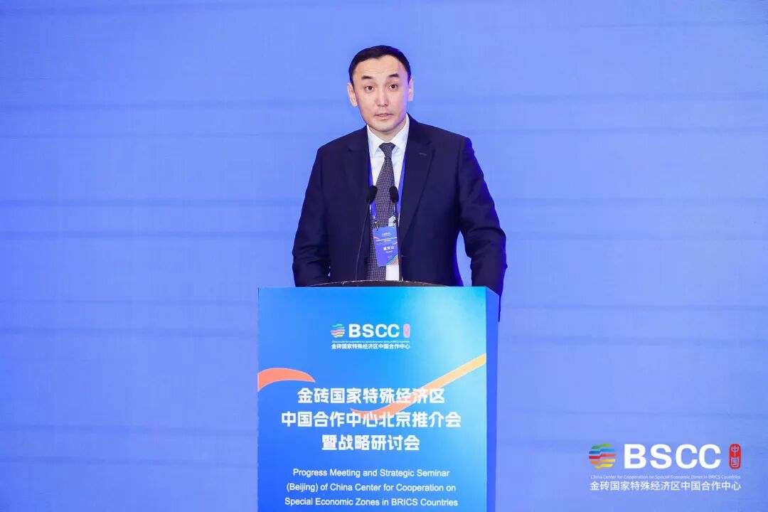 由金砖国家特殊经济区中国合作中心(以下简称“金砖合作中心”)秘书处、浙江省人民政府驻北京办事处、杭州市商务局主办的金砖国家特殊经济区中国合作中心北京推介会暨战略研讨会在京举行。商务部国际经贸关系司副司长赵春峰、浙江省商务厅总经济师朱军、浙江省人民政府驻北京办事处副主任谢寿华等出席会议。活动特别邀请了俄罗斯、印度、阿联酋、伊朗、埃塞俄比亚、哈萨克斯坦、乌兹别克斯坦等金砖成员国及伙伴国驻华使节莅临现场。此外,来自联合国工发组织、联合国贸发会议、联合国小水电中心等国际组织代表,以及相关行业商协会、跨国公司、智库专家等近150位嘉宾参与本次会议。