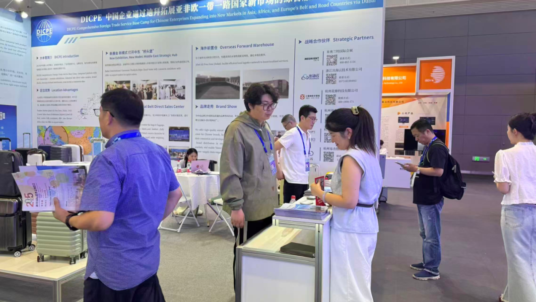 平湖市国际电子商务产业园展位围绕“丝路电商”主题,集中展现DICPE外综合服务体系、全球箱包产业大脑等多项创新,吸引大量观众驻足交流。