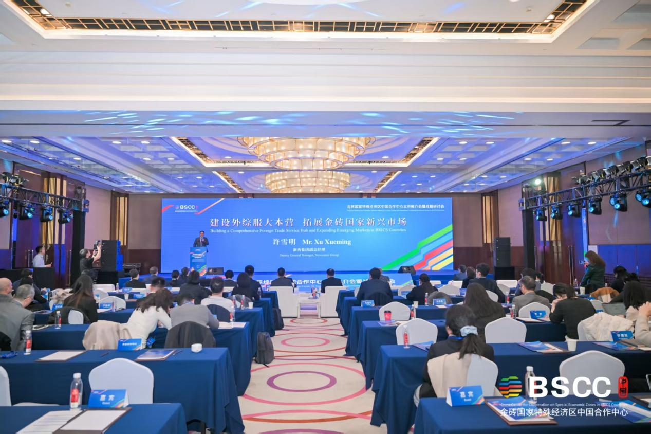 11月19日在金砖国家特殊经济区中国合作中心北京推介会上,新秀集团作为企业代表分享《建设外综服大本营 拓展金砖国家新兴市场》的金砖国家合作案例,受到大会的热烈反响,纷纷认为“外综服大本营”模式是外贸拓订单创新好模式。通过“外综服大本营”进行产业带供应链出海,为金砖国家提供本地化供应链服务。
