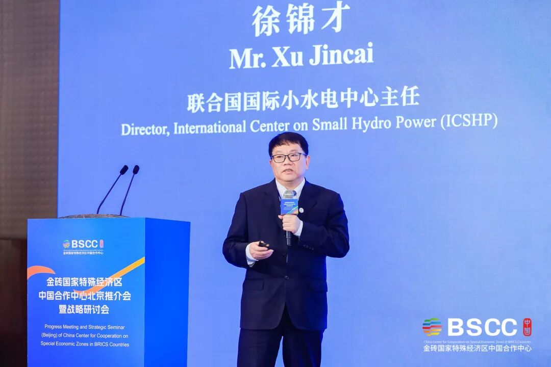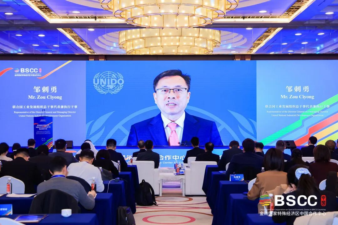 由金砖国家特殊经济区中国合作中心(以下简称“金砖合作中心”)秘书处、浙江省人民政府驻北京办事处、杭州市商务局主办的金砖国家特殊经济区中国合作中心北京推介会暨战略研讨会在京举行。商务部国际经贸关系司副司长赵春峰、浙江省商务厅总经济师朱军、浙江省人民政府驻北京办事处副主任谢寿华等出席会议。活动特别邀请了俄罗斯、印度、阿联酋、伊朗、埃塞俄比亚、哈萨克斯坦、乌兹别克斯坦等金砖成员国及伙伴国驻华使节莅临现场。此外,来自联合国工发组织、联合国贸发会议、联合国小水电中心等国际组织代表,以及相关行业商协会、跨国公司、智库专家等近150位嘉宾参与本次会议。