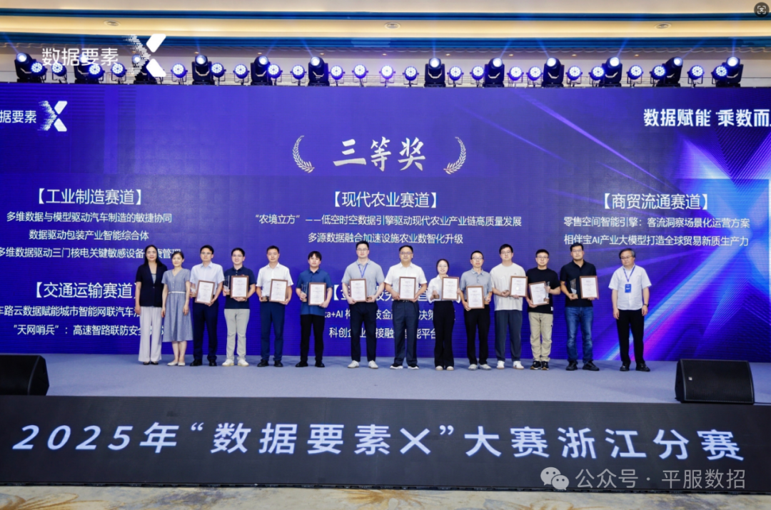 近期,2025年“数据要素×”大赛浙江分赛决赛成绩正式揭晓,《相伴宝AI产业大模型打造全球贸易新质生产力》获得决赛三等奖。